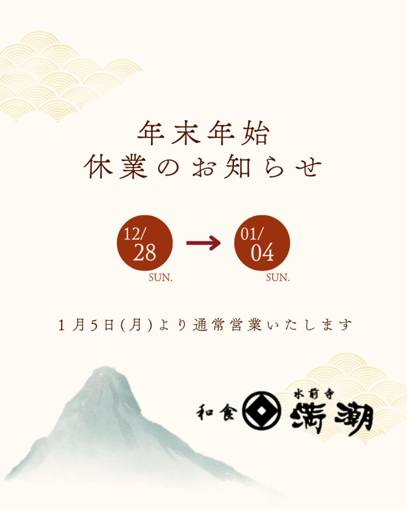 誠に勝手ながら、当店の年末年始の営業につきましては下記の通りとさせていただきます。
